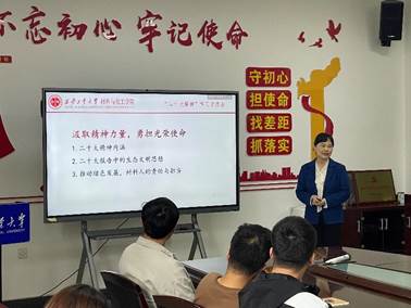 全体师生的教学和科研当中,表示在二十大精神中生态环境的改善和治理尤为重要,要求我们材化人不仅要攻坚克难,不断研发环境友好的新型功能材料,还要持续关注材料在使用过程中废弃物的处理及其循环利用。在互动交流环节,同学们畅所欲言地探讨了如何更好地以实际行动贯彻落实二十大精神。