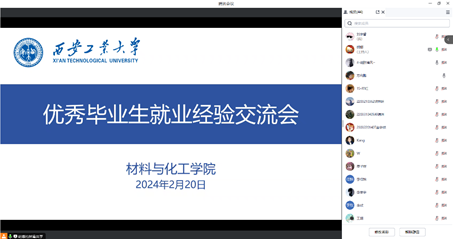召开线上优秀毕业生就业经验分享会,邀请学院优秀博士毕业生董雄博分享就业经验,学院研究生辅导员胡娜、全体硕士研究生参加会议。
