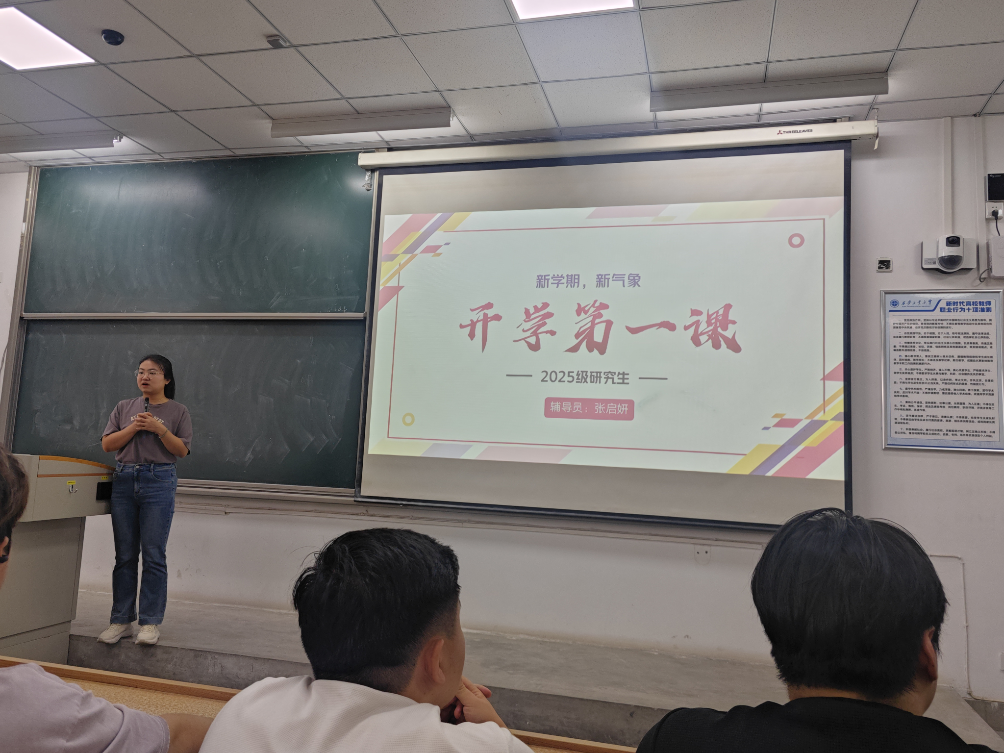入学教育中,研究生辅导员张启妍聚焦新生成长关键环节,从多个维度开展细致讲解与精准引导。在安全教育板块,结合校园生活实际案例,系统梳理宿舍用电安全、消防安全、网络安全及人身财产安全等核心要点,通过风险场景剖析,助力新生牢固树立“安全第一”的意识;在纪律规范方面,重点解读学校考试管理规定,明确考场纪律红线与学术诚信要求,引导新生自觉遵守校纪校规;针对日常事务办理,详细演示日常请假、外出实习实践、校园卡服务、奖助补贷申请等流程,现场解答新生在手续办理中的疑问,助力其高效处理校园事务。同时,秘书刘伟围绕培养计划展开深入解读,从课程体系设置、学分要求,到开题报告撰写、中期考核标准、论文答辩要求等学术环节,清晰梳理流程并明确时间节点,帮助新生提前明晰专业学习路径与学术发展方向,为后续专业学习与科研实践做好规划。