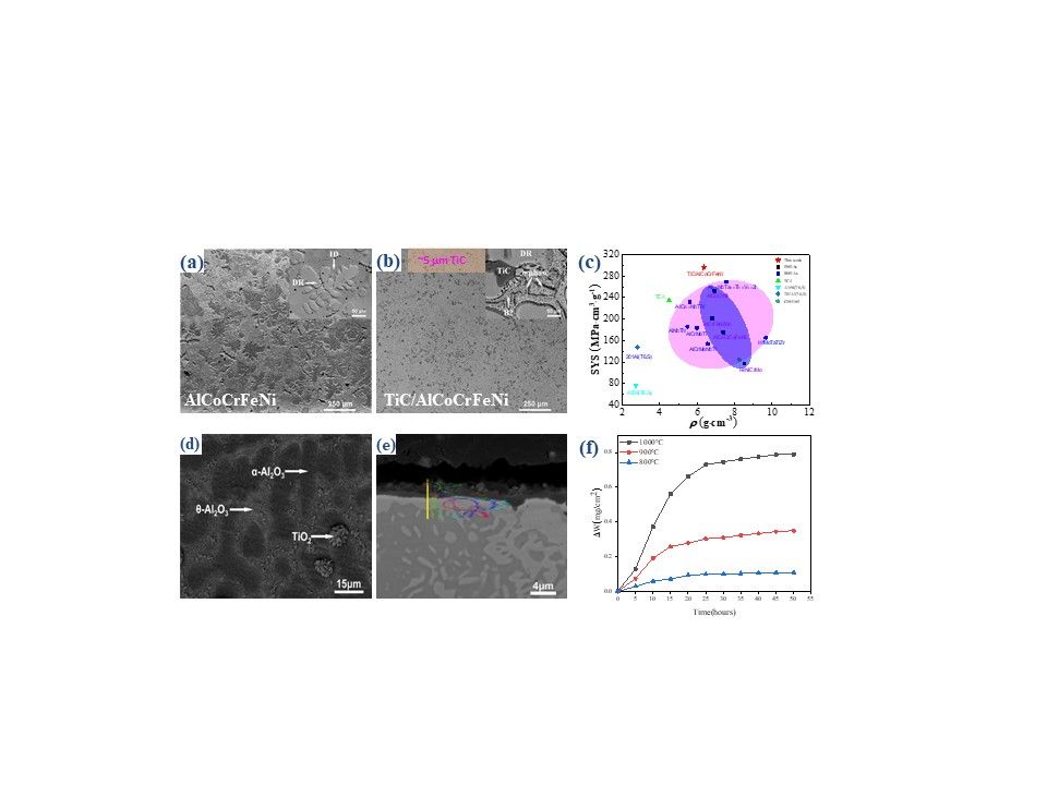 形成非晶的热力学预测与成分设计、非晶/纳米晶软磁材料、低密度高比强度高熵合金、共晶高熵合金、轻质高比强度高熵合金。制备的非晶软磁合金综合性能优于传统硅钢片、坡莫合金和Nanoperm型纳米晶软磁合金,与Finemet型纳米晶软磁合金相当,具有良好的应用前景。研制了一种轻质、高强度的共晶耐火高熵合金;开发了低密度、高比强度的原位TiC/AlCoCrFeNi高熵合金。相关研究成果发表在Materials LettersJournal of Materials ResearchVaccum等学术期刊。