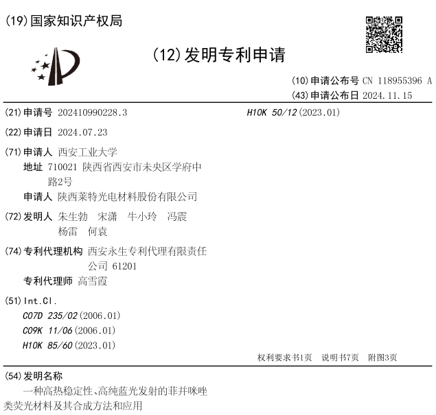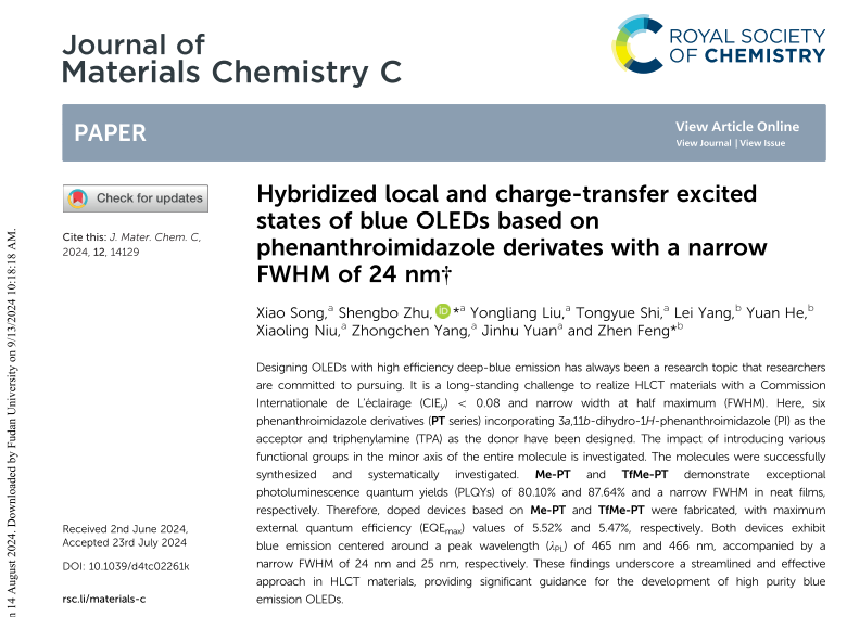 【成果名称】具有HLCT特性高纯蓝色OLED的应用